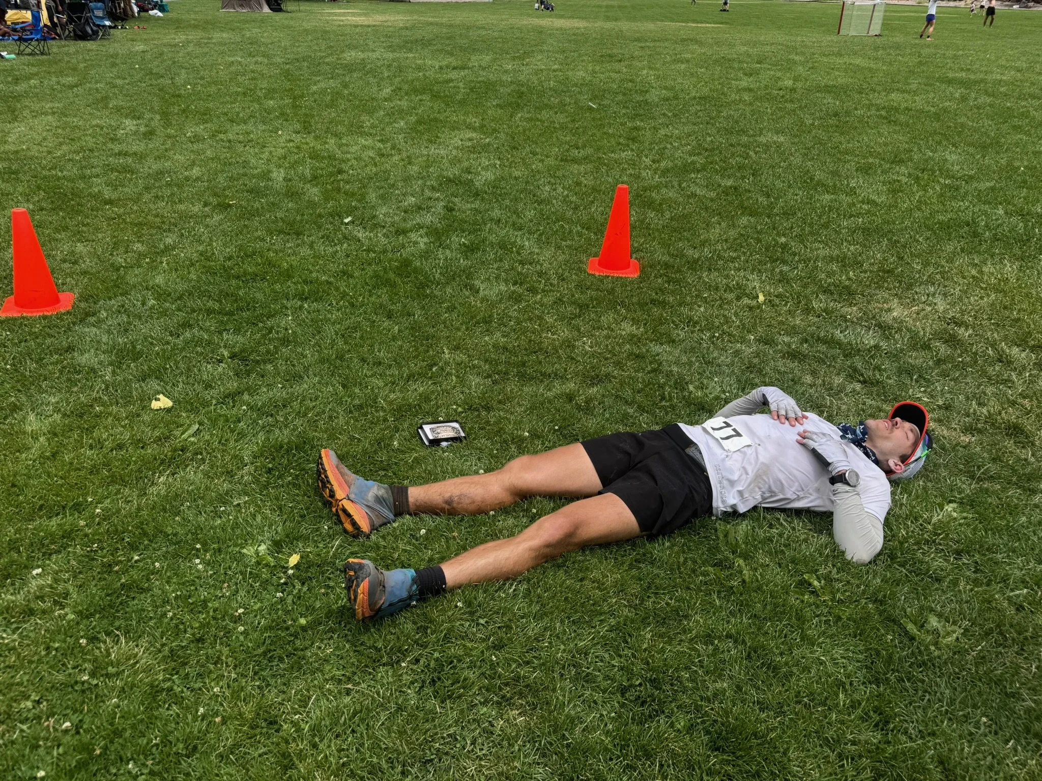 Just after crossing the finish line, two cones, totally spent. Ultras are the best!